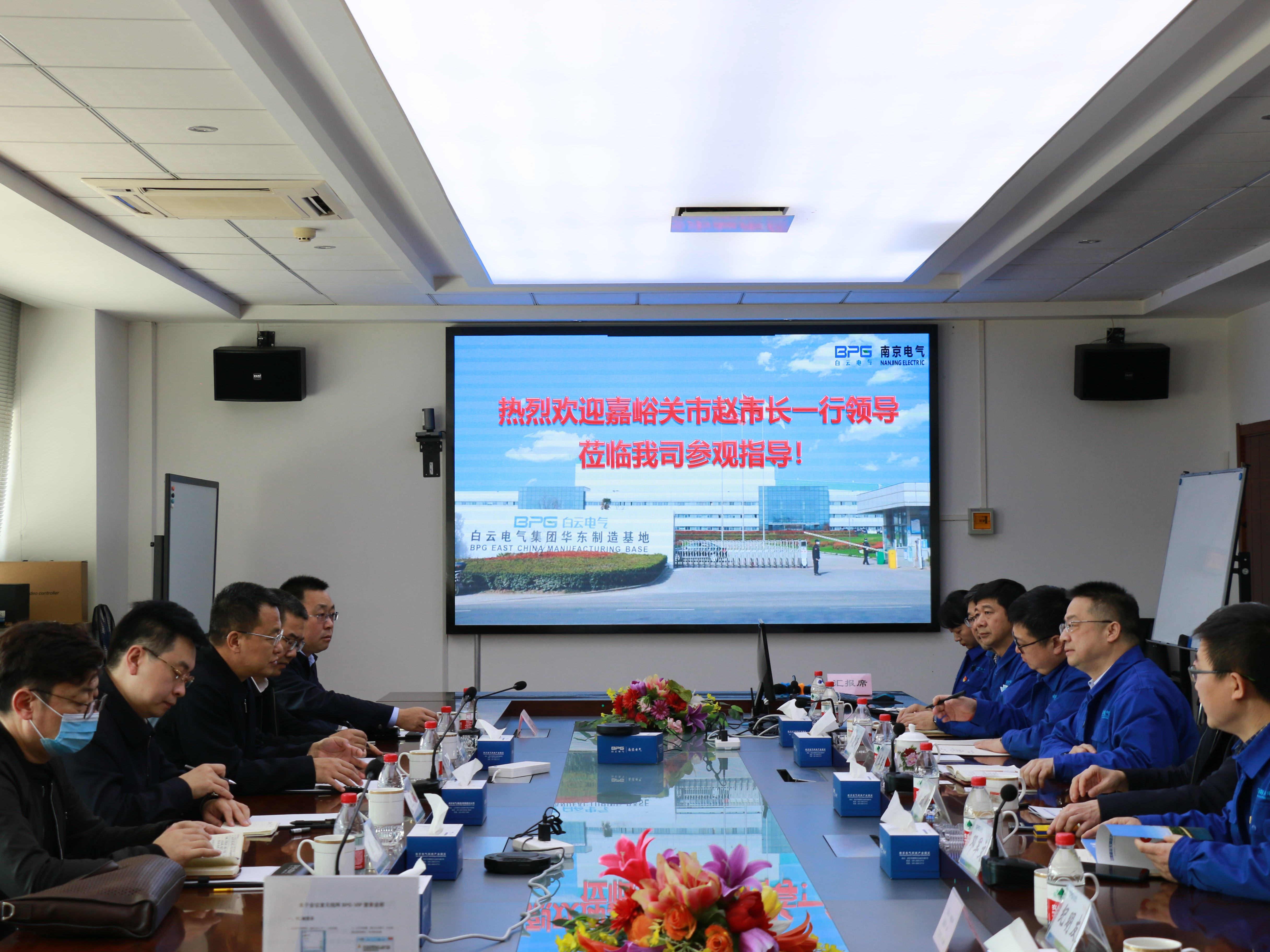 2022年2月23日上午,甘肃省嘉峪关市市委常委、常务副市长赵宝毅,嘉峪关市工业园区管委会主任王国华,嘉峪关市科学技术局局长王玮等到南京电气考察。白云电气集团副总经理、南京电气科技集团总经理沈其荣,南京电气科技集团副总经理邓军文,南京电气科技集团副总经理、南京电气电力工程公司总经理姚汉卿等领导参加接待,并介绍企业情况。