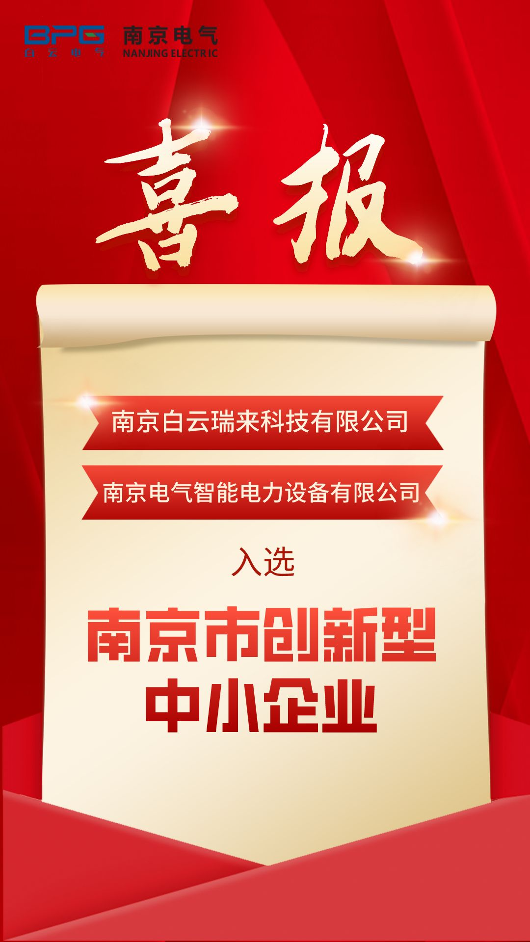 9月21日,南京市人民政府促进中小企业发展工作领导小组办公室公布了2022年度南京市创新型中小企业名单。乐动手机登录界面下属南京白云瑞来科技有限公司和南京电气智能电力设备有限公司名列其中,双双入选。