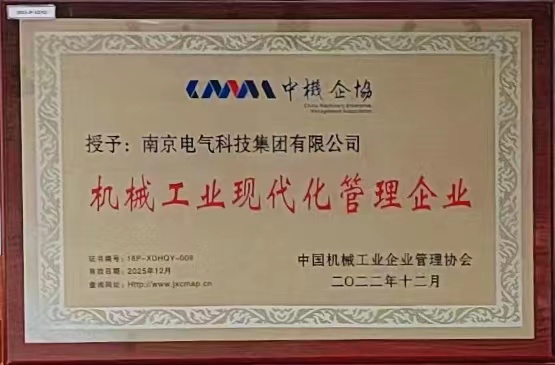 获评机械工业现代化管理企业,是对企业管理水平的充分肯定。南京电气将积极树立好行业管理标杆和示范典型,为引领和推动行业管理水平提升、塑造企业品牌形象发挥积极促进作用,同时也将以此为契机,不断提升企业的综合实力和核心竞争力,为服务国家新型电力系统建设和推进机械工业高质量发展做出新贡献。
